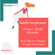 Les Inspirantes, communauté de femmes bienveillantes, actives et engagées vous invitent à leur future soirée, pour découvrir le parcours de 3 femmes entrepreneures inspirées et ..inspirantes ! Marion Choppin, Claire Desarnaud et Emmanuelle Roy nous y présenteront leur parcours et projet-s : actions et solutions pour un monde meilleur et inspirant, à leur image.